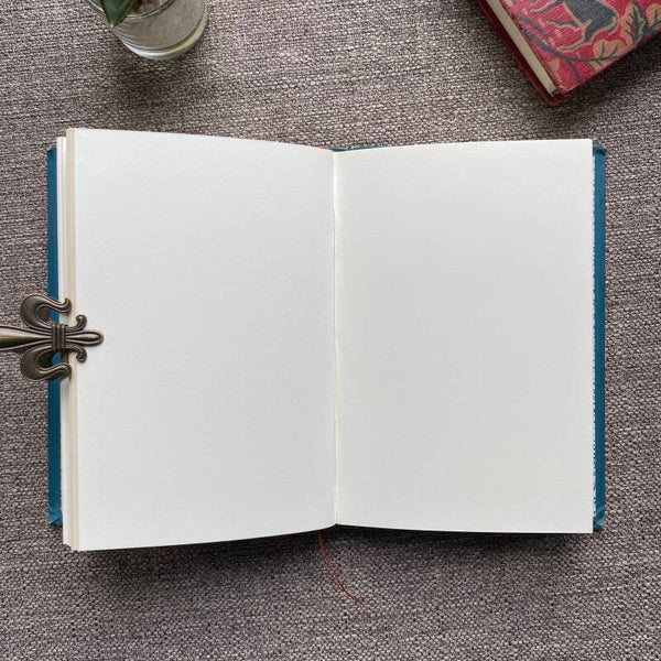 I reuse books that need a little help to regain some of their former glory deconstructing and then hand sewing a few repaired first chapters. These are combined with a soft cream premium plain paper for your thoughts, ideas and sketches. I add new endpapers that are reproductions of period Italian papers, silk ribbon bookmarks and a certificate of authentication, which you can also personalise.This notebook has a newly rounded spine with detailed head and endbands, all detailed in the images provided.