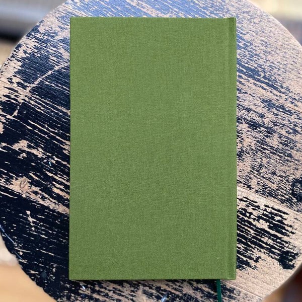 The cover includes a debossed, hand cut, silhouette of the author and their name hand blocked in gold foil to front and spine. Inside you will find colour coordinated Italian end papers and a place for personalisation with information about the reused original print. The salvaged pages are combined with a pale cream quality paper for writing and sketching. Details include endbands and silk ribbon bookmark.