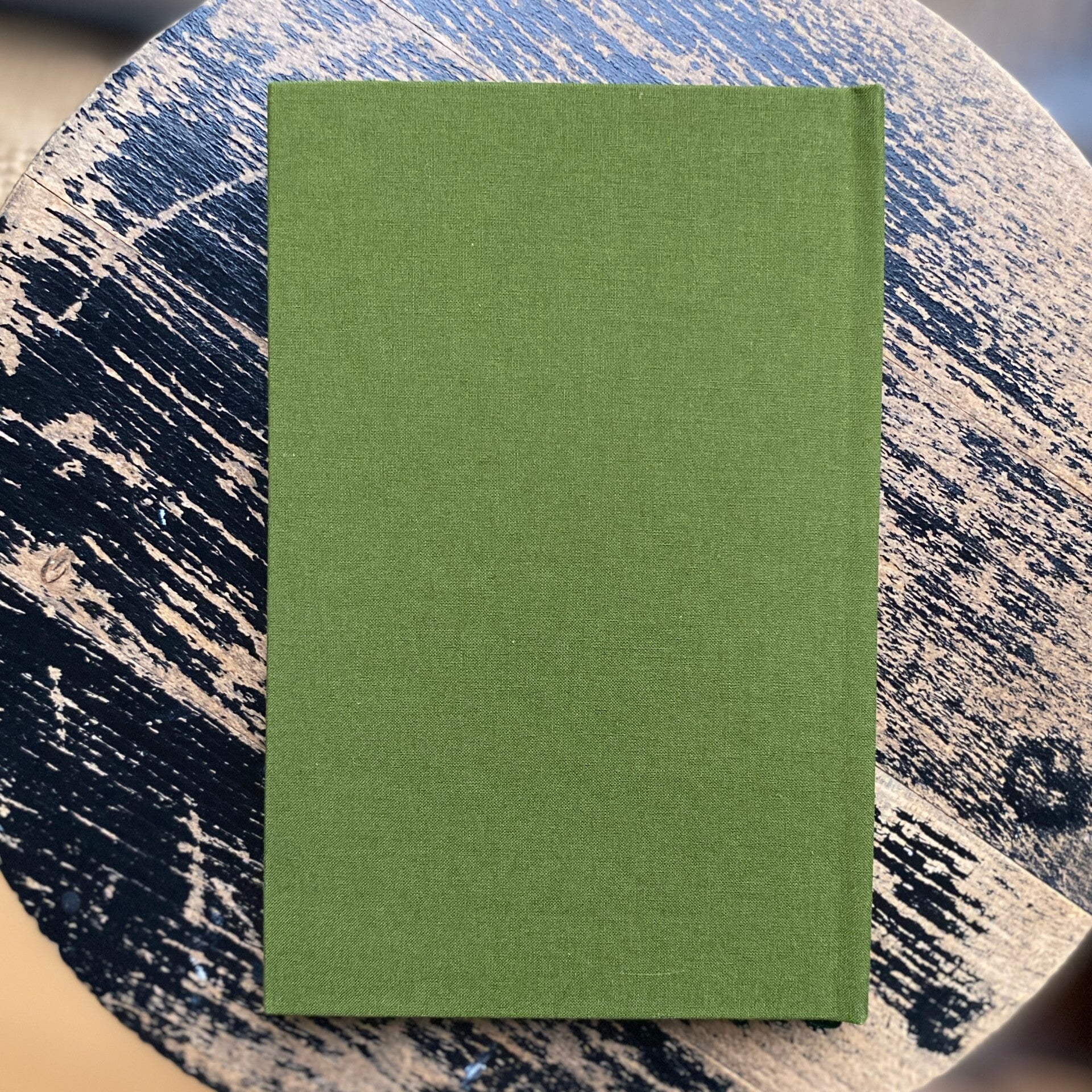 The cover includes a debossed, hand cut, silhouette of the author and their name hand blocked in gold foil to front and spine. Inside you will find colour coordinated Italian end papers and a place for personalisation with information about the reused original print. The salvaged pages are combined with a pale cream quality paper for writing and sketching. Details include endbands and silk ribbon bookmark.